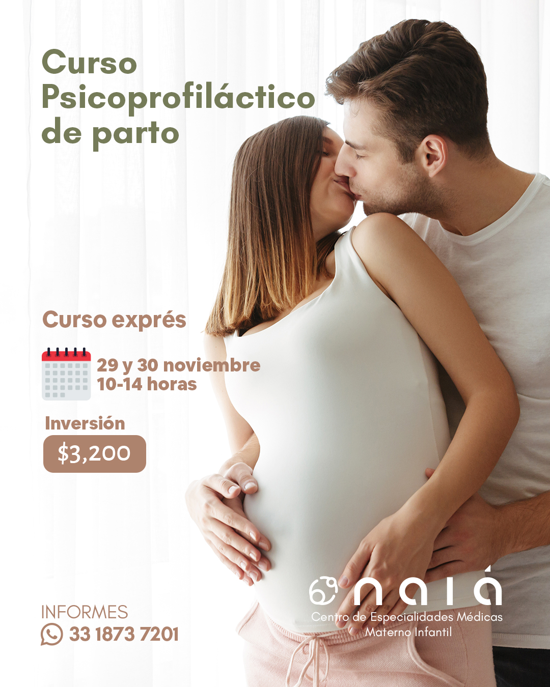 En Naiá Centro de Especialidades Médicas Materno Infantil te invitamos a nuestro Curso Psicoprofiláctico de Parto Exprés, ideal si buscas prepararte de forma completa, intensiva y en poco tiempo, junto a tu pareja.