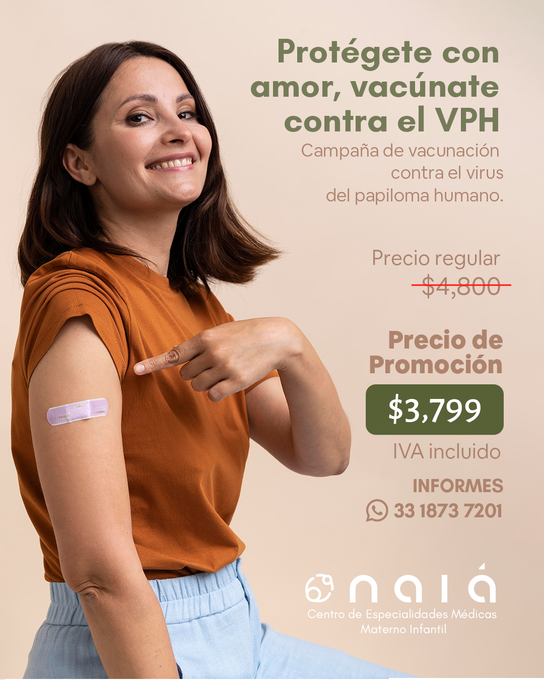 En Naiá Centro de Especialidades Médicas Materno Infantil, nos sumamos a la prevención con una campaña especial para cuidar tu salud y la de quienes más quieres.